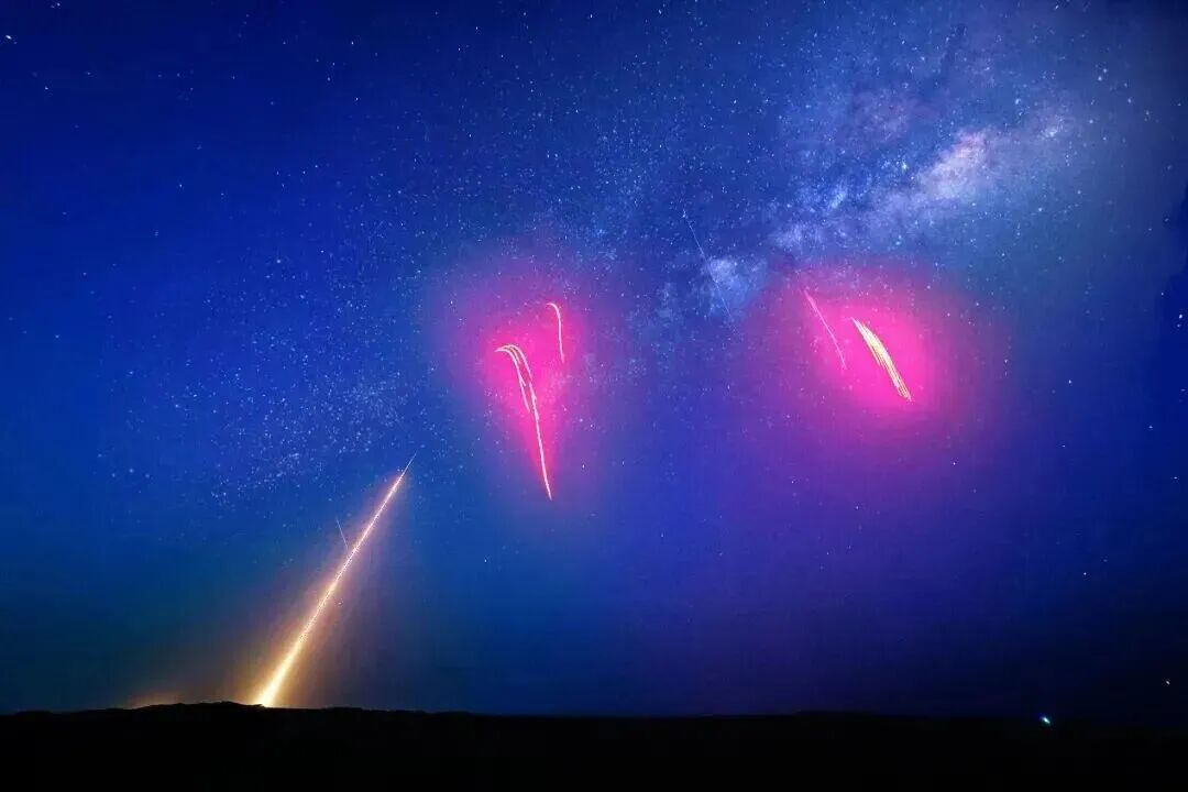 戈壁深处亘古的夜幕笼罩着沙漠万籁俱寂一道黄色光迹划破夜空骤然点亮旷野沉寂的戈壁深处仿佛被悄然唤醒2025年8月12日晚一年一度的英仙座流星雨迎来极大值今年在这片亘古夜幕中还多了另一抹璀璨当晚22时30分一枚名为“信使号流星雨”的试验火箭发出低沉轰鸣腾空而起经历数十秒的穿云破雾它冲出大气在沙漠天幕之巅骤然绽放六十簇炽烈光团宛若火树银花倾泻而下与自然流星交相辉映缓缓洒落于深邃的天幕之中沙漠环线上在数千名沿途游客的共同见证下这场全国首次的“...