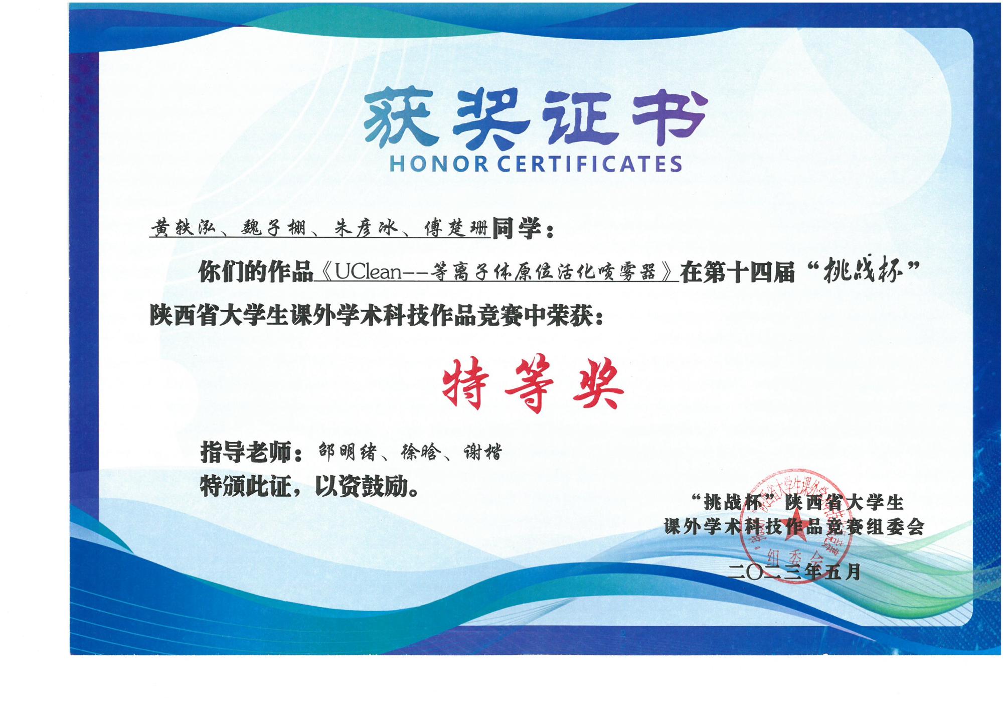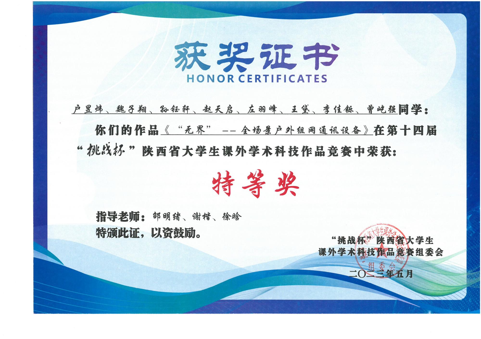 (通讯员 户昱炜)近日,第十四届“挑战杯”陕西省老员工课外学术科技作品竞赛在长安大学落下帷幕,由MK体育师生完成的《“无界”——全场景户外组网通讯设备》和《U-Clean ——等离子体原位活化喷雾器》两件作品在本届大赛中斩获特等奖。