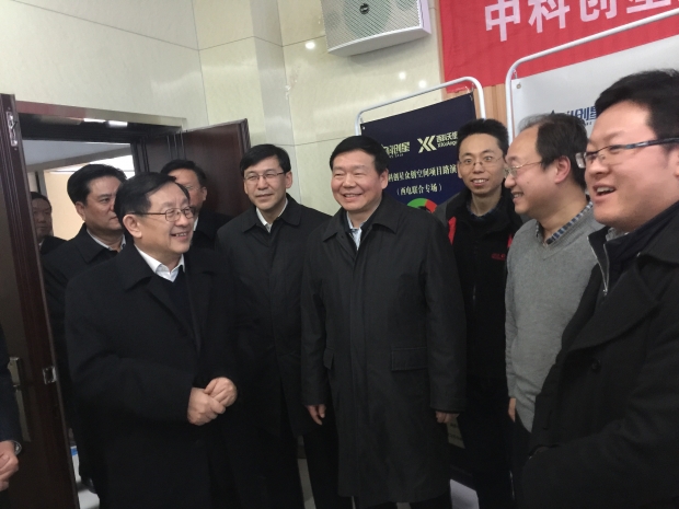就在同学们正在进行紧张的路演时,全国政协副主席、科技部部长万钢,陕西省省长娄勤俭,科技部副部长阴和俊等一行来到中科创星众创空间调研科技创新与创业工作,恰巧经过路演的会议室并听说同学们正在进行创新项目的路演时,便来到会议室与师生们进行了亲切交流,他说:“当今社会是一个创新型社会,应该大力鼓励老员工进行创新创业,只有这样,我们的国家才能不断发展。预祝大家路演成功!”