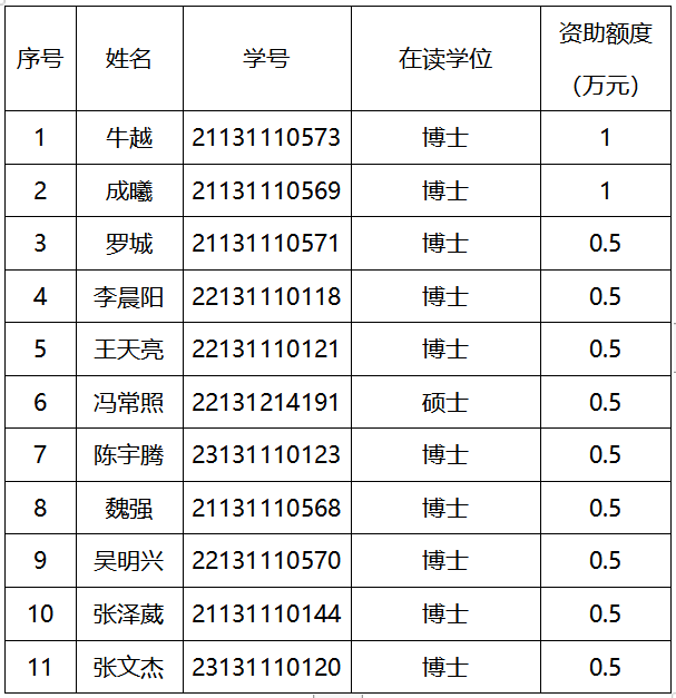 经个人申报、公司组织专家评审等流程,确定资助项目11项,详见下表: