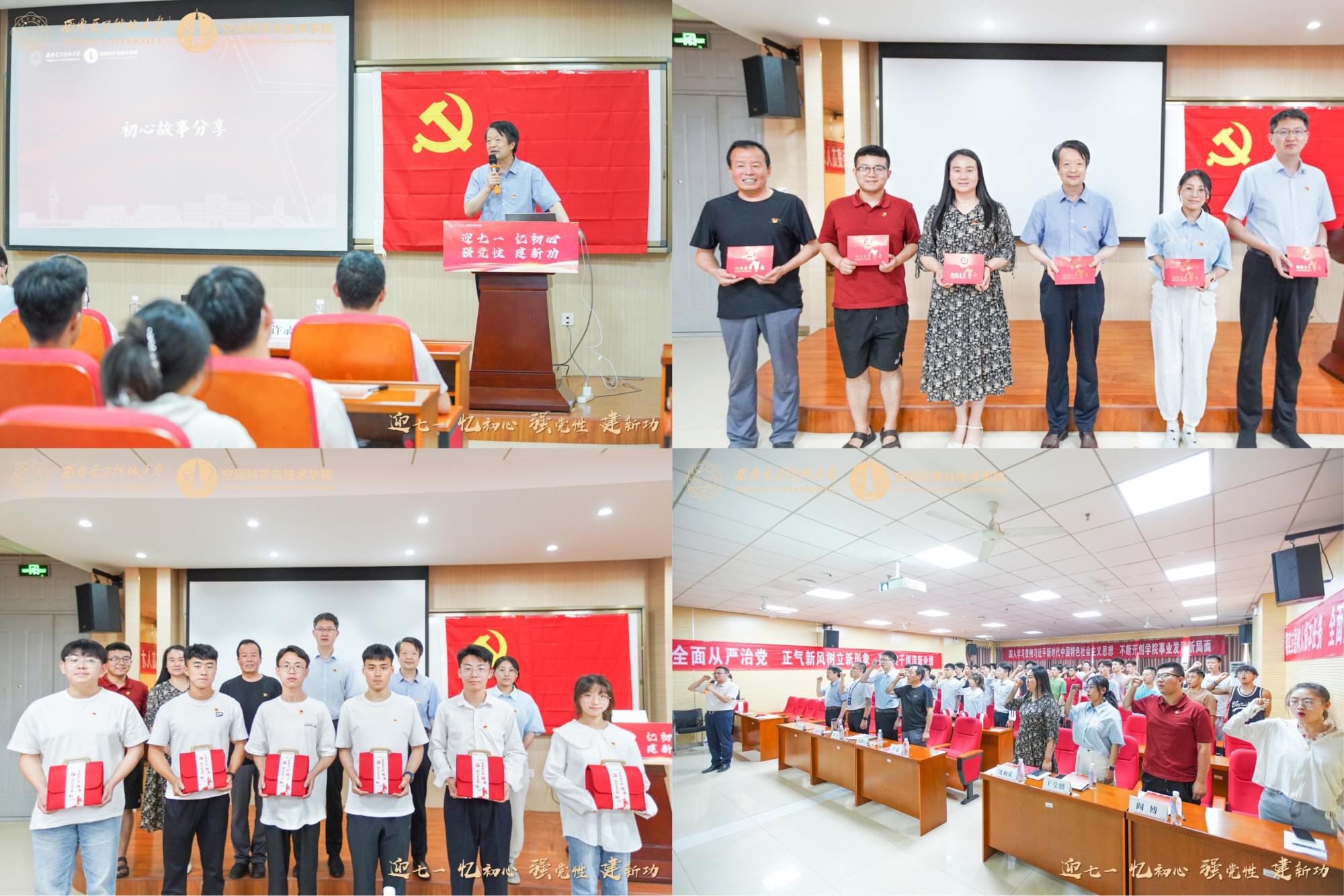 在这场新老党员“薪火相传”的对话中,师生党员共同回忆了自己的入党初心,随后,教师党员代表为员工预备党员佩戴党员徽章,送上了“初心礼包”,内含有党徽、中国共产党章程、党员学习手册等,激励新党员要坚定信念,时刻牢记使命,自觉接受党组织的教育、管理和监督,自觉加强学习。