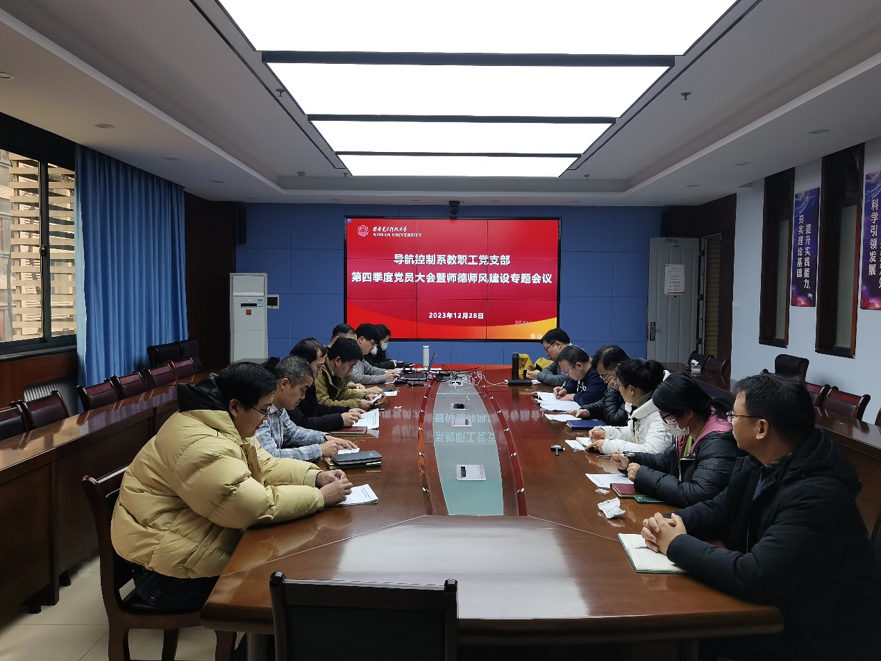 (通讯员 王光敏)为深入学习贯彻习近平总书记关于教师队伍建设的重要论述,落实立德树人根本任务,大力弘扬教育家精神,以高质量师德师风建设引领高质量教师队伍建设,2023年12月28日下午,MK体育导航控制系教职工党支部召开党员大会暨师德师风建设专题会议。会议由导航控制系教职工党支部书记、系主任戴浩主持,导航控制系全体教师参加会议。