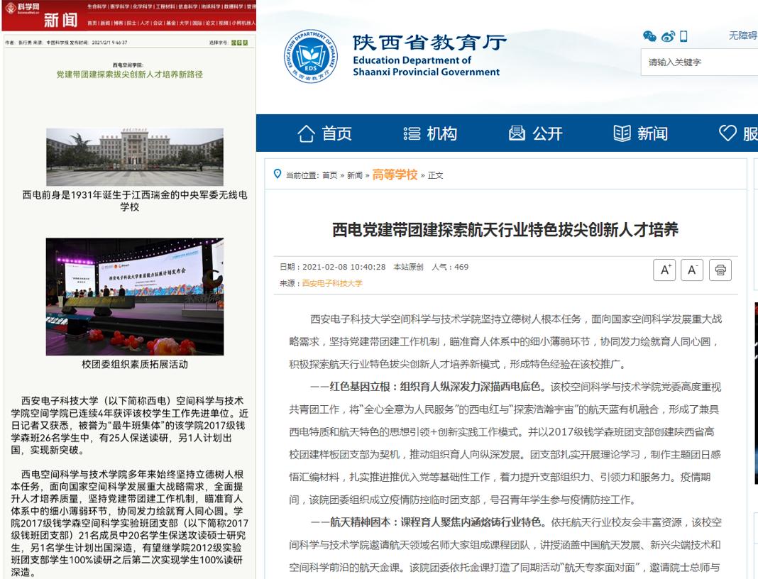 科学网、陕西省教育厅网站专题报道公司党建带团建特色人才培养举措