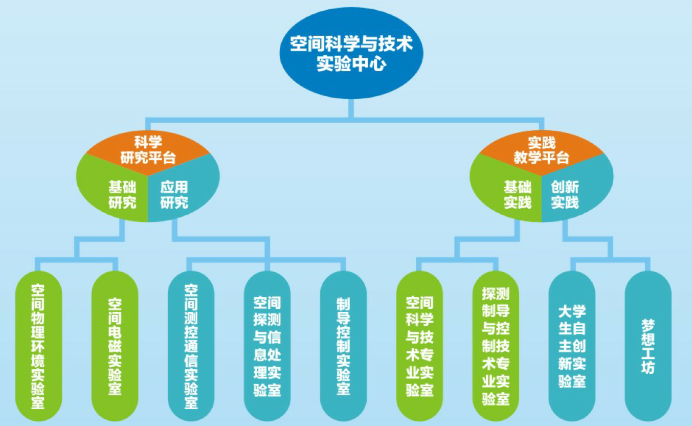 空间科学与技术实验中心建立了一套相对完整并行之有效的空间科学与技术实验教学与科学研究实验体系——教学实践平台和科学研究平台。实验教学体系依托于实践教学平台,由空间科学与技术专业实验室、探测制导与控制专业实验室、老员工自主开放创新实验室和空间梦想工坊实验室等四大模块所组成,具有基础性、综合性、自主性和创新性等鲜明特色。科学研究体系依托于科学研究平台,由空间物理环境实验室、空间电磁实验室、空间测控通信实验室、空间探测与信息处理实验室和制导控制实验室等五大模块所组成,具有基础性、综合性和创新性等鲜明特色。