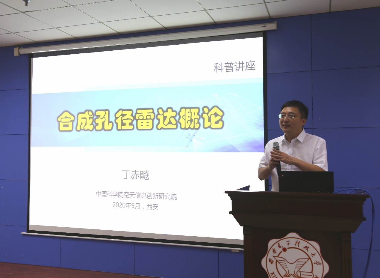 随后,丁赤飚研究员为师生们带来《合成孔径雷达概论》专题航天金课,从工作原理、成像处理概念、图像理解和发展趋势等方面对合成孔径雷达进行了详细的介绍,并回答了师生们的提问,深入浅出的语言和实实在在的案例让学术报告变得通俗易懂。对于雷达领域的发展,丁赤飚研究员认为“雷达是一个复杂的系统,时空基准、导航控制、网络通信、电磁理论、信号处理、人工智能等多学科交叉的特征越来越明显,作为一个跨学科的技术,它还有很广阔的发展空间。电子系统的一体化将是未来重要的发展趋势。”