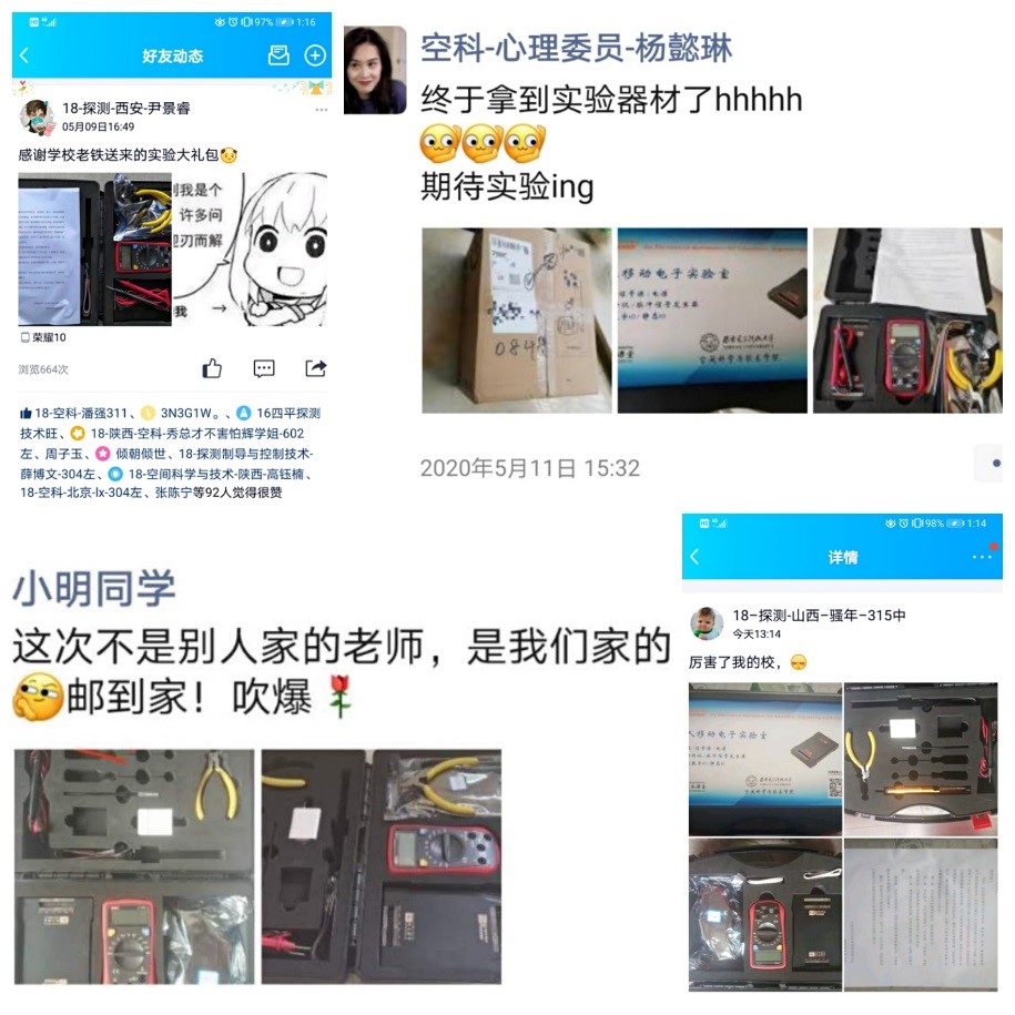 (通讯员 席慧)“厉害了,我的院!”“这次不是别人家的老师,是我们家的老师。”“邮到家,吹爆!”“终于拿到器材了,期待实验ing”……5月10日,MK体育2017级、2018级员工们的朋友圈洋溢着满满的自豪、兴奋和感动。一份份满载着老师们谆谆关怀和同学殷切期待的“个人移动实验室”,跨越过千山万水,背负着特殊使命,在“停课不停教、停课不停学”的特殊时期抵达了员工们手中。截止5月底,MK体育员工已经使用“个人移动实验室”在圆满完成了3次远程实验课,线上、线下相结合的教学模式助力各项实践训练稳步推进。