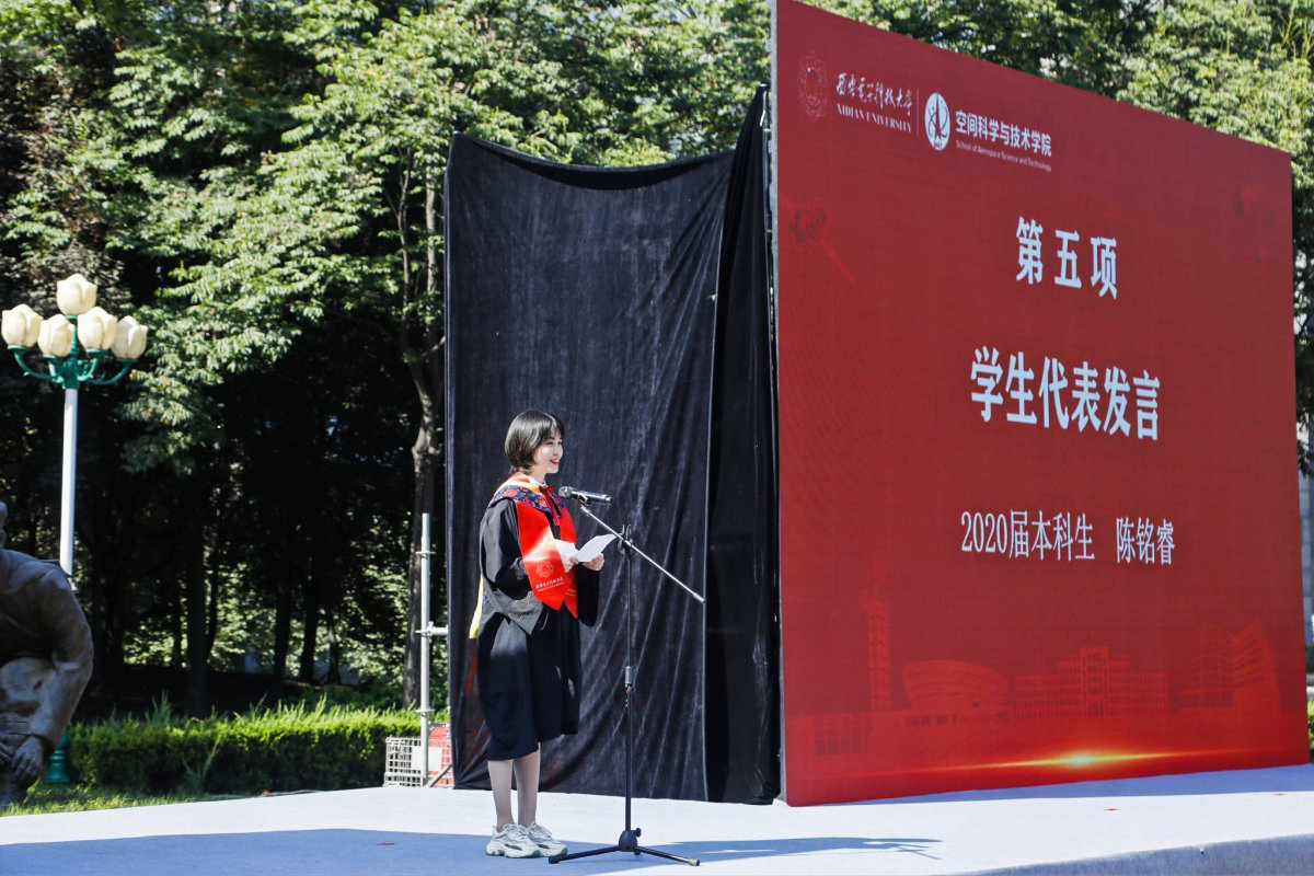 “请允许我代表MK体育全体毕业生,向疫情期间所有奋战在第一线的逆行者致以最崇高的敬意,也向精心栽培我们的领导老师和悉心关怀我们的父母亲人,致以最衷心的感谢!”本科毕业生代表陈铭睿以“我和西电的四年之约”为题,谈及MK体育历史性时刻和在校园各个角落的点点滴滴,并激励全体同学:“不忘‘西电红’的底色和‘三有西电人’的使命担当,认准心之所向、身之所往,与航天精神相伴,与共和国同行。”