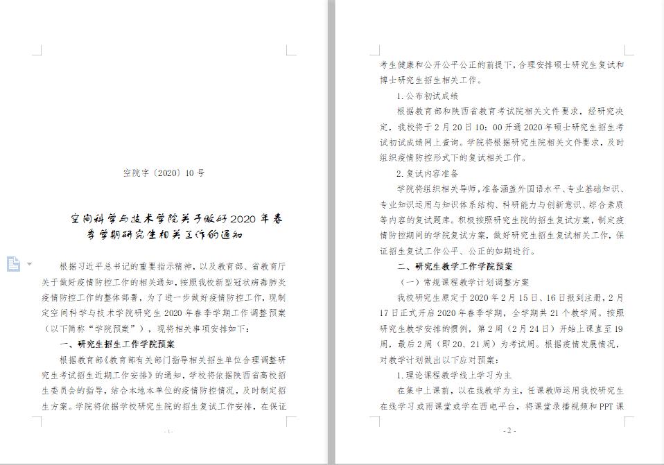 《MK体育研究生2020年春季学期相关工作调整预案》