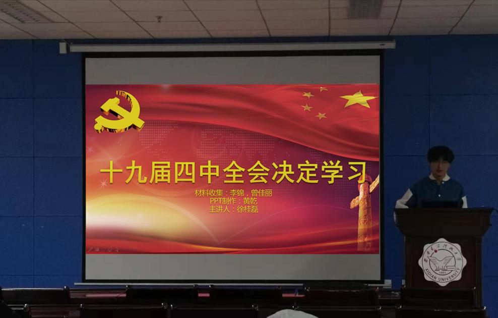 在交流分享中,各小组围绕“十九届四中全会”,“中美贸易战”,“香港问题”,“中国梦”,一带一路”等专题进行了深入讨论。通过线上自学、线下讨论、集中研讨、分工展示等环节,各学习小组团结协作,表现积极,态度认真,针对党章党规、党史、热点时政等多个话题进行深入思考,大胆表达自己的看法与见解,把理论与实际相结合,引得台下掌声阵阵。