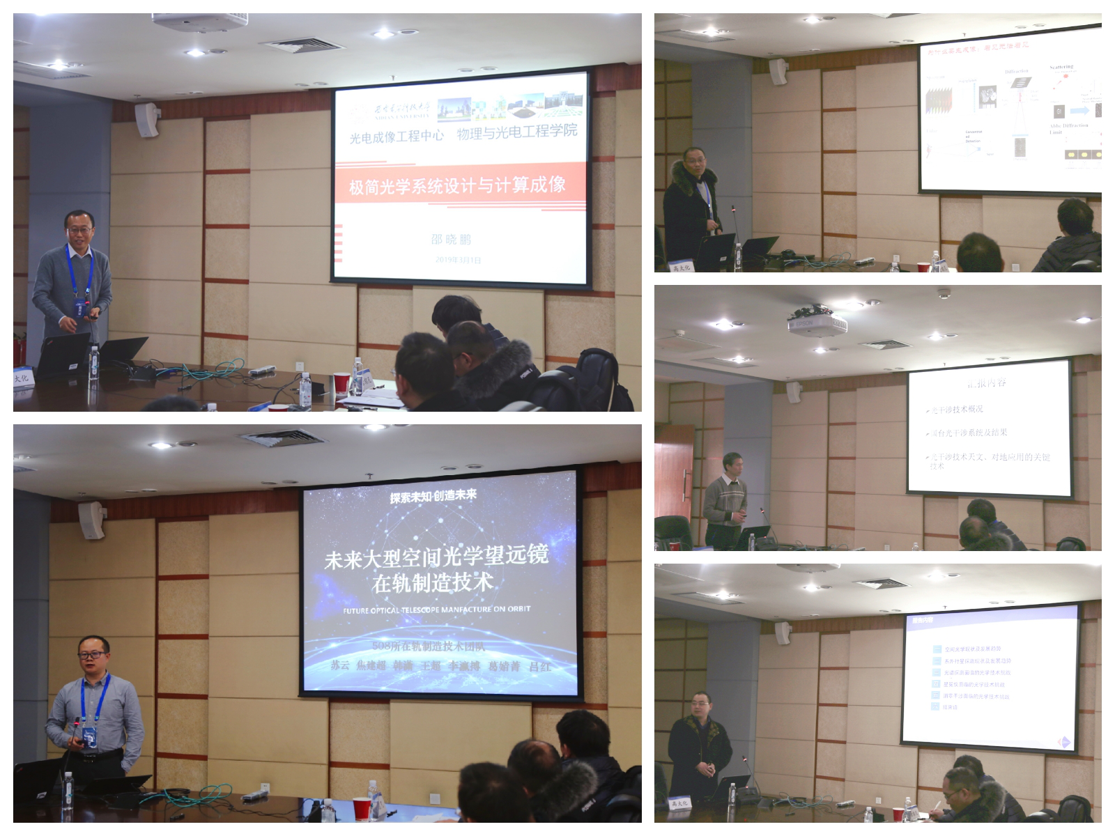 中国科公司国家天文台姜爱民研究员、北京空间机电研究所苏云研究员、中国科公司西安光机所樊学武研究员、上海光机所韩申生研究员、MK体育官网邵晓鹏教授为广大师生带来“基于望远镜阵列的光学综合孔径技术”、“未来大型空间光学望远镜在轨制造技术”、“系外行星探测面临的光学技术挑战”、“看见无法看见—鬼成像研究进展”、“极简光学系统设计与计算成像”5场精彩的学术报告,围绕空间光学合成孔径领域最新研究成果开展深度研讨和交流。