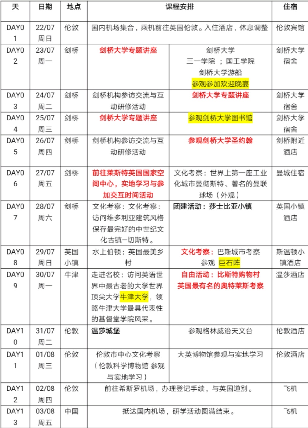 名校课堂体验英式教育项目中安排有剑桥大学教师授课,有行业精英交流,看英国老师如何讲课,观英国员工怎样创新,体验世界顶级理工名校的校园文化与西方教育模式。学习前沿理论知识的同时,与前辈探讨专业课题以及前景规划。