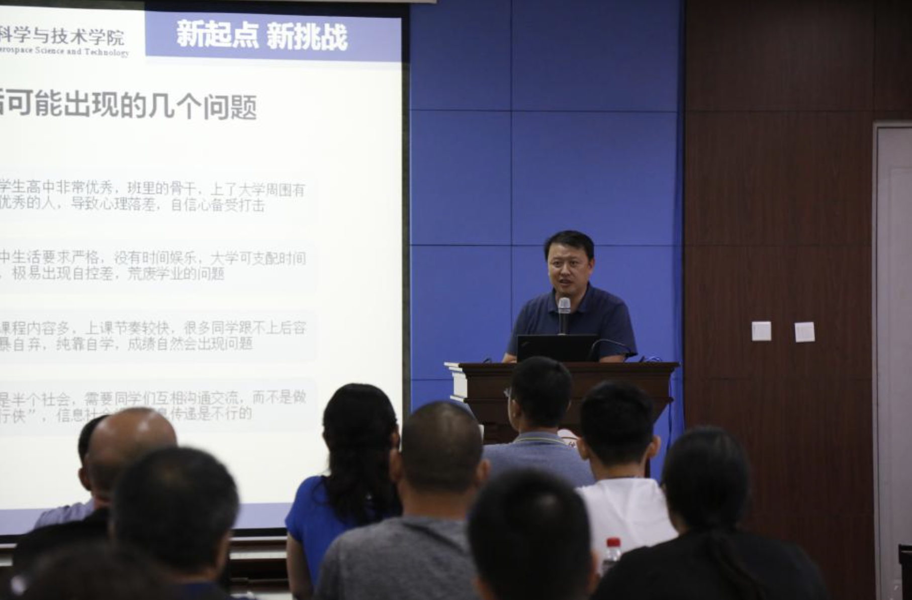 邓军就新生入学后的教育管理重点问题向在场家长和新生进行了讲解,希望刚刚进入大公司园的新生能够尽快适应大学新生活、培养良好的学习与生活习惯,并希望各位家长能够积极配合公司和公司,共同帮助新生树立自主学习、自我成长的意识。