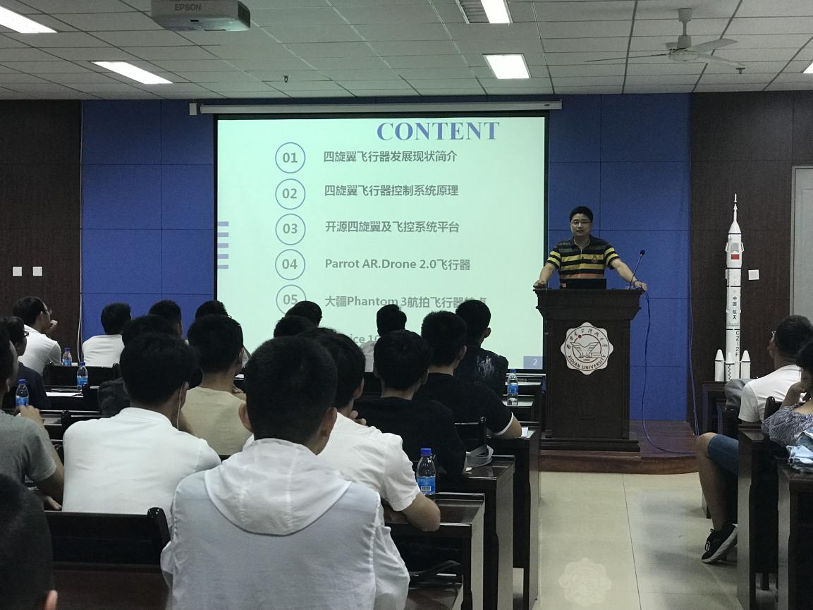 随着科技的进步,智能化、信息化的时代已经到来,员工对于无人机学习的兴趣越来越浓厚。近日,面向员工需求,员工资助管理中心联合MK体育开展了“FAST”计划第二期无人机培训,由孙伟教授为家庭经济困难员工和无人机爱好者进行现场真机教学。“FAST计划”第二期“天空之眼”无人机培训,无人机、培训材料、模拟飞行场地均由资助管理中心为员工提供。首次课程,主讲教师孙伟围绕四旋翼飞行器发展现状、控制系统原理、开源四旋翼及飞控系统平台、Parrot AR.Drone 2.0飞行器、大疆Phantom 3航拍飞行器特点等内容,现场真机教学,深入浅出地为同学们讲述微型四轴飞行器的相关理论知识。