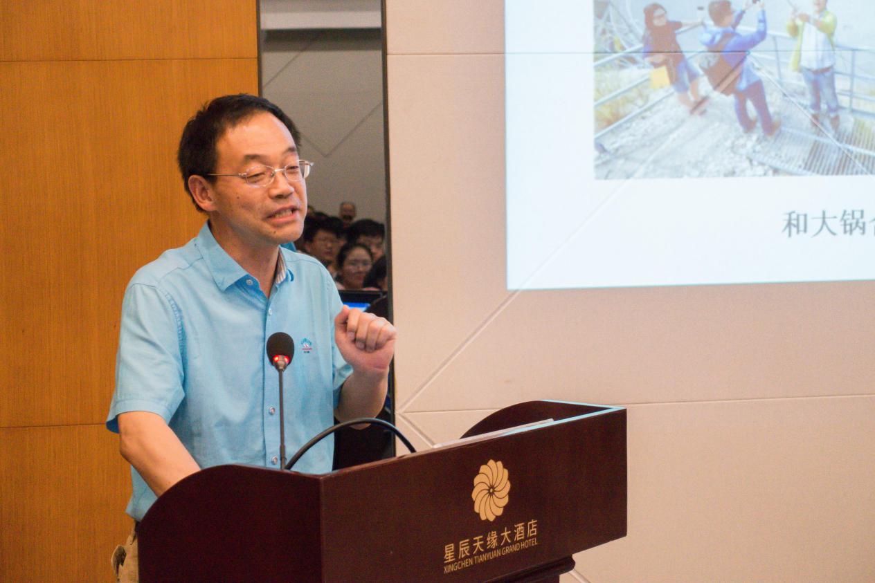 行程的第三站是与中国科公司武向平院士的交流座谈会。武院士先为大家做了精彩的报告,介绍了一些有关射电望远镜的知识,除了FAST,武院士还着重介绍了SKA——平方公里阵列望远镜。之后,武院士就SKA国际合作模式、数据共享政策以及外星文明探索等问题,与大家展开了深入的交流,为同学们答疑解惑。