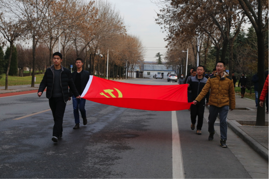 下午16:00时整,公司执行经理李小平、党委书记梁玮、副经理刘彦明、校工会办公室主任高晖共同为活动鸣枪发令,MK体育全体师生从“长征路上办学”雕塑前神采奕奕、身姿矫健的出发。初冬午后,风和日暖,空气清新,四名高举党旗的员工党员一马当先,走在队伍的最前方,所有师生紧随其后、你追我赶,竞赛气氛非常浓烈。