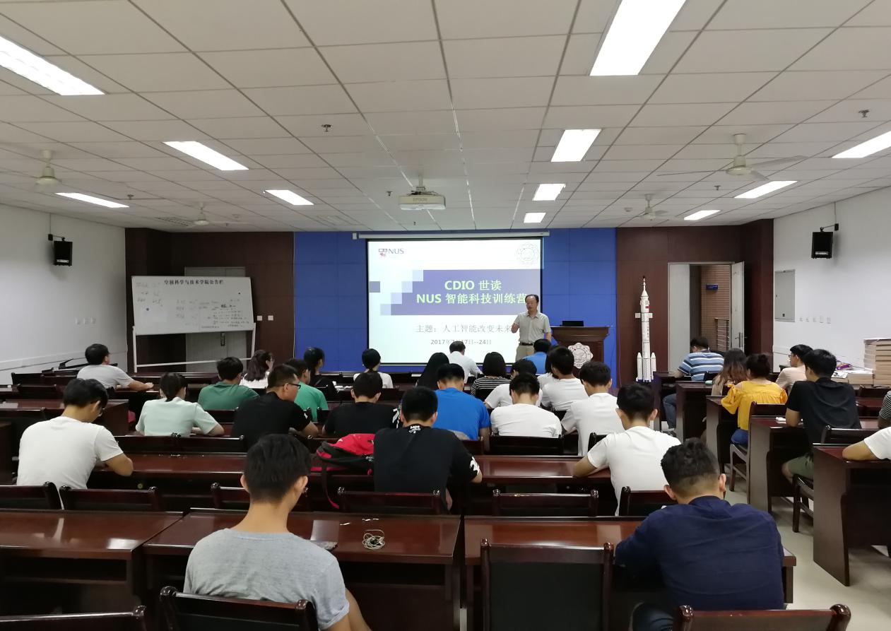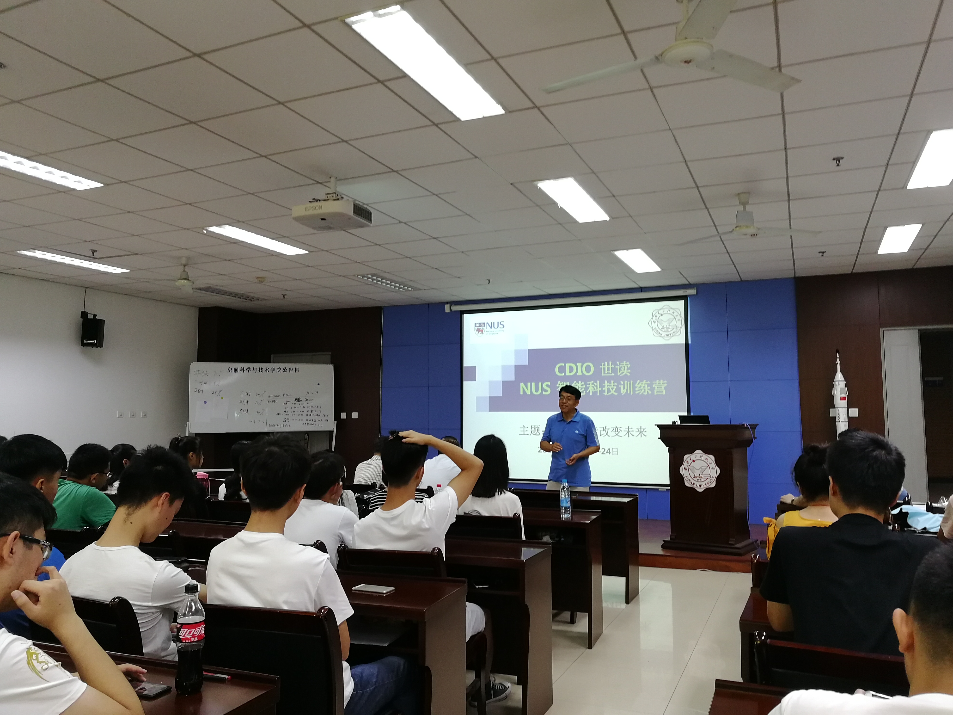 空间科学与技术公司党委书记梁玮老师作为此次训练营的主要组织实施者,在致词中强调在项目实施过程中不断拓展自己的国际化视野,在学习的同时广交益友,为推动训练营的成功举办和西电的国际化做好铺垫。梁玮书记还介绍了选择新加坡作为访学项目地点的原因——新加坡不仅人工智能发达,在生活中应用广泛,还是“海上丝绸之路”的重要节点,有利于我们理解“一带一路”的战略重要性。并再次解读了CDIO世读的含义——Collaboration + Discovery + Internationalization = Opportunity,走向世界,读遍全球。