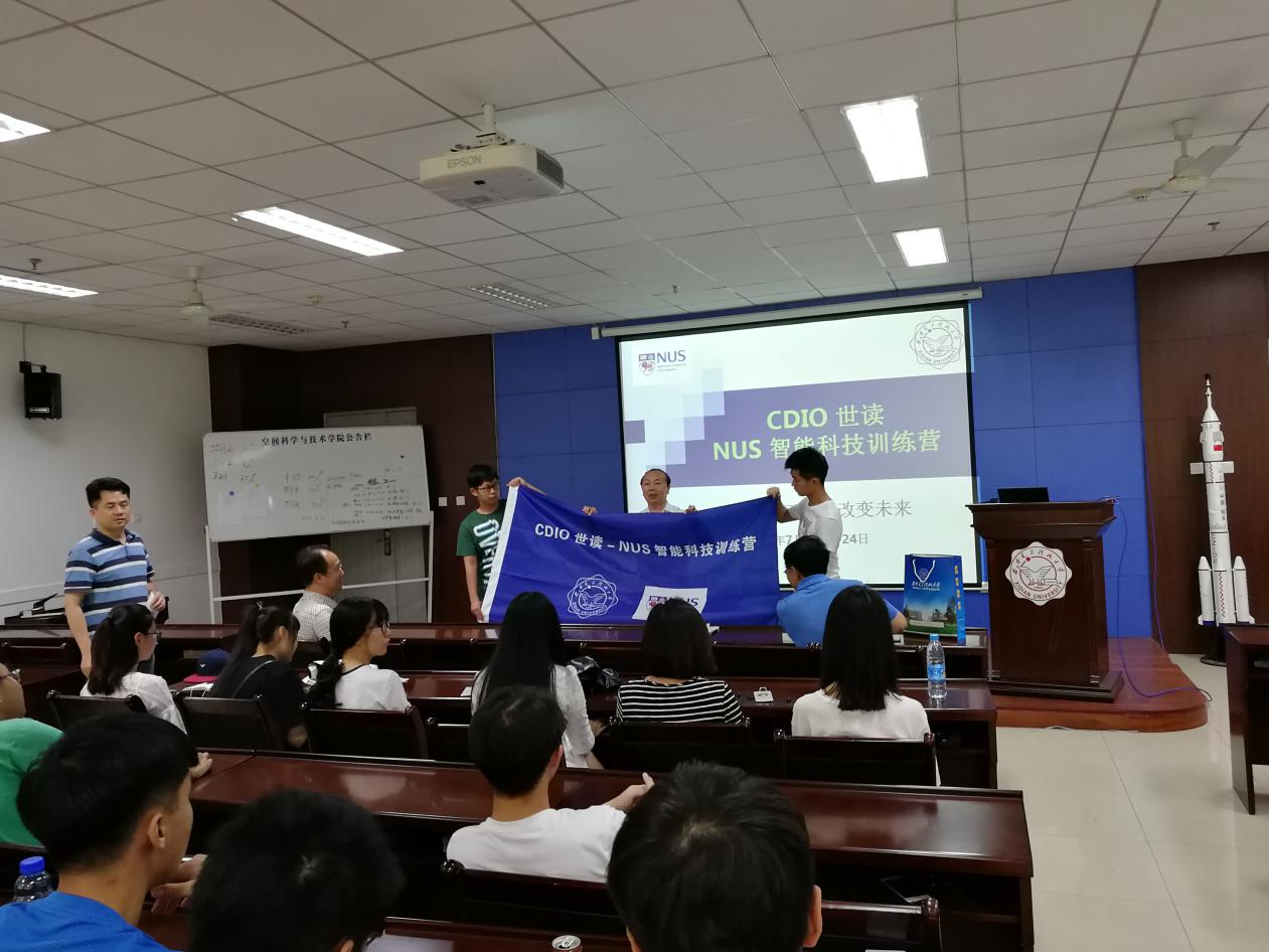 本次CDIO世读-NUS智能科技训练营共有40余名师生组成代表团出访新加坡,旨在深入探索国家“一带一路”发展战略,拓展员工国际视野,引导广大师生在“一带一路”宏伟蓝图的指引下正确认识世界和中国发展大势,正确认识中国特色和世界比较,筑梦中国,圆梦中国。在访学过程中让员工在体验新加坡人文的同时,在新加坡世界一流的大学和先进智能科技企业园区中学习了解新加坡的大学教育及智能科技发展前沿知识。在带队老师黎剑兵简要地介绍了训练营内容、行程安排及住宿条件后,校国际交流与合作处左处长就同学们出国访学应注意的问题进行了发言并给训练营授营旗。