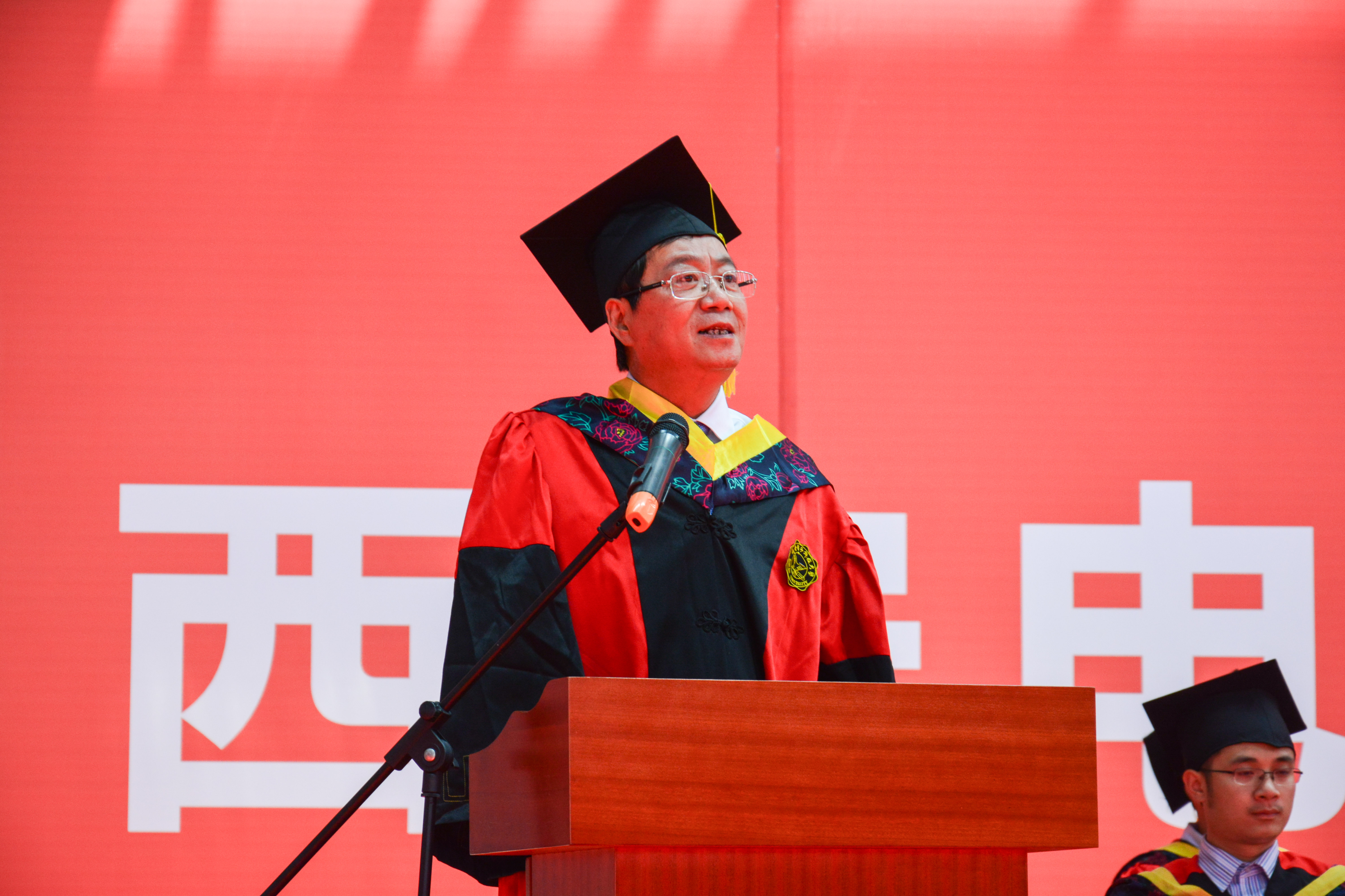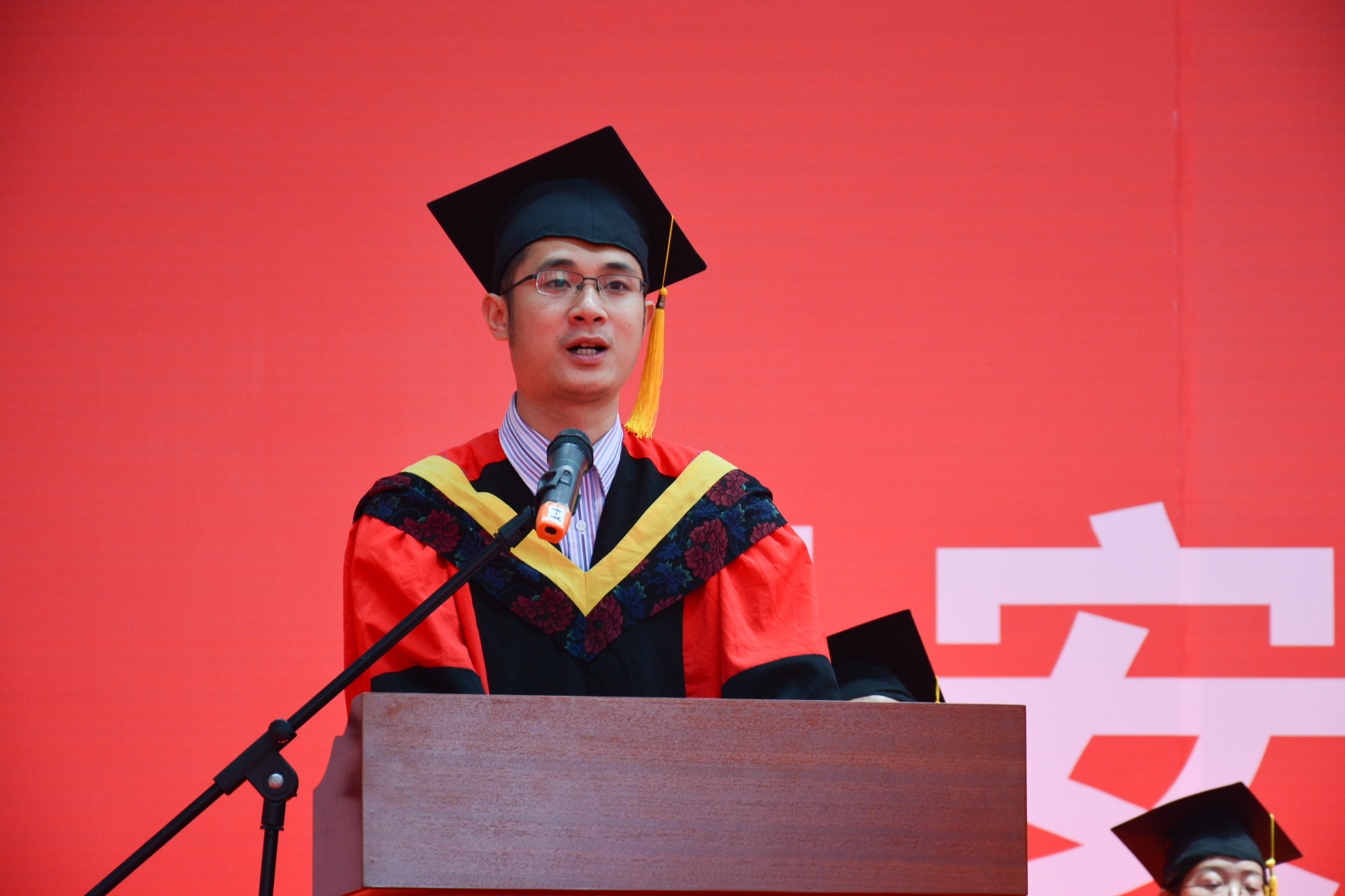 “在这个六月的尾巴,在这个有爽朗的晴空和放肆的白云的季节,学业刚取得小成你们即将离开校园,到更加广阔的舞台,迈出属于你们辉煌人生的第一步,来自天南海北的兄弟姐妹们再回到天南海北…”教师代表谢楷教授用生动、幽默又饱含深意的发言为全体毕业生送上祝福,同时他还为毕业生送上“西电踏实肯干的作风与公司的不怕苦不怕累的航天精神”、“终身学习的习惯”、“勇于创新的精神”三个人生锦囊。