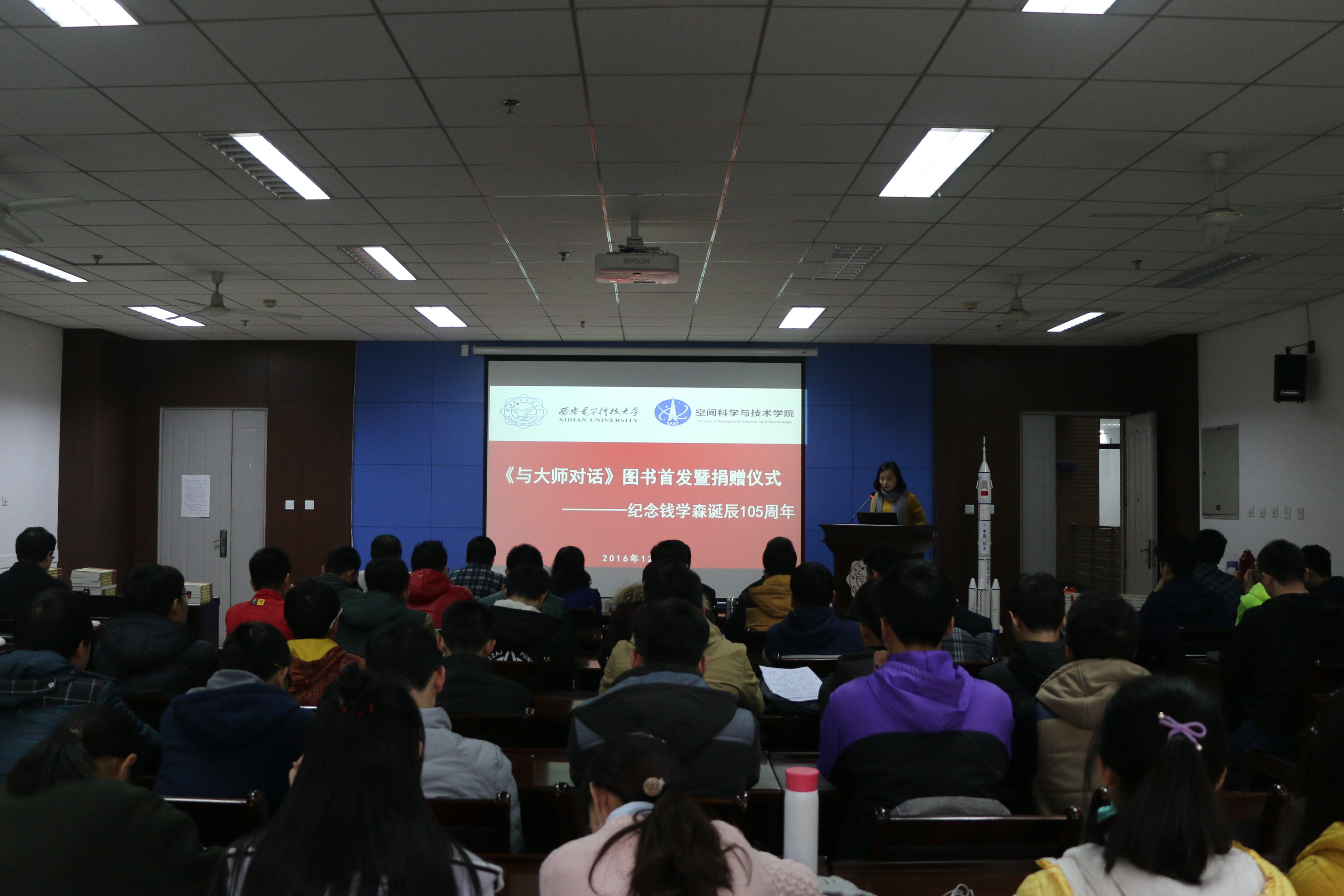 为纪念我国航天事业创建60周年,著名科学家、伟大思想家钱学森先生诞辰105年暨公司“钱学森空间科学实验班”创办第二年,在西电出版社与MK体育的共同努力下,在钱学森先生之子、上海交通大学钱永刚教授的倾力帮助下,《与大师的对话——著名科学家钱学森与钱学敏教授通信集》在西电出版社于日前正式出版发行。《与大师对话》图书首发及赠送仪式于12月14日在南校区G240隆重召开。西电出版社社长胡方明教授,西电图书馆副馆长李文兴老师,MK体育执行经理李小平教授,党委书记梁玮老师以及钱学森空间科学实验班全体员工参加了本次仪式。
