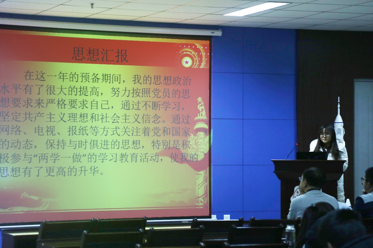 其后,本次的转预对象刘润之、纪晓凤和转正对象姚海芳、马静相继上台就各自的入党动机和考察期的思想动态以PPT的形式向大家作了详细的汇报,并对自身的缺点作了认真的总结。