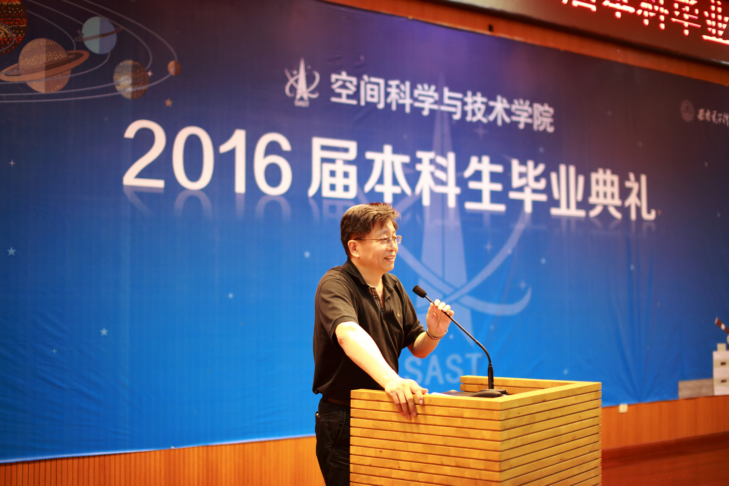 郝跃院士在典礼中致辞,他首先回顾了MK体育的发展历程,肯定了MK体育取得的显著成绩,他高兴地说:“四年的时间,证明了我们最初的选择是非常正确的,而这一决定也使在座的同学们获益良多。作为联系MK体育的校领导,我见证了MK体育的每一步前行,新生军训、小卫星出征、运动会表演、无人机训练,点滴往事历历在目,空间学子们积极向上的精神面貌和老师们辛勤耕耘的教学热情都给我留下了深刻印象”。他在讲话中引用了黎巴嫩一位诗人的话:“我们常常走得很远,但却忘了当初为什么出发”,高度赞扬了MK体育始终坚持以员工为本的办学宗旨,始终把员工培养作为最根本任务的工作理念。最后,郝董事长寄语毕业生,希望同学们能够“想起母校,我心依旧;面向未来,展翅翱翔!”