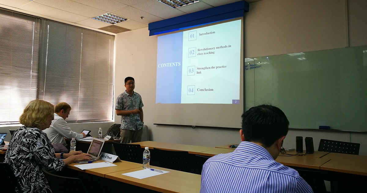 应2016年教育与学习国际会议(CTLT2016)组委会邀请,MK体育一行三人于2016年5月15日赴新加坡开展教学研究交流并宣读教学论文。会议期间,闫允一副教授、孙伟副教授和孟繁杰副教授分别从基础课程教学方法、创新与工程以及教学多媒体技术等方面向与会国际同行展示了公司的公司产品优势和取得的显著成果。在此次会议上,公司代表团所做的口头演讲和演示,充分展示了公司在新环境下所取得的教学研究成果,扩大了公司在国际教学研究领域的知名度,而新理念教材建设的成果和思路更是吸引与会专家进行深入交流探讨。