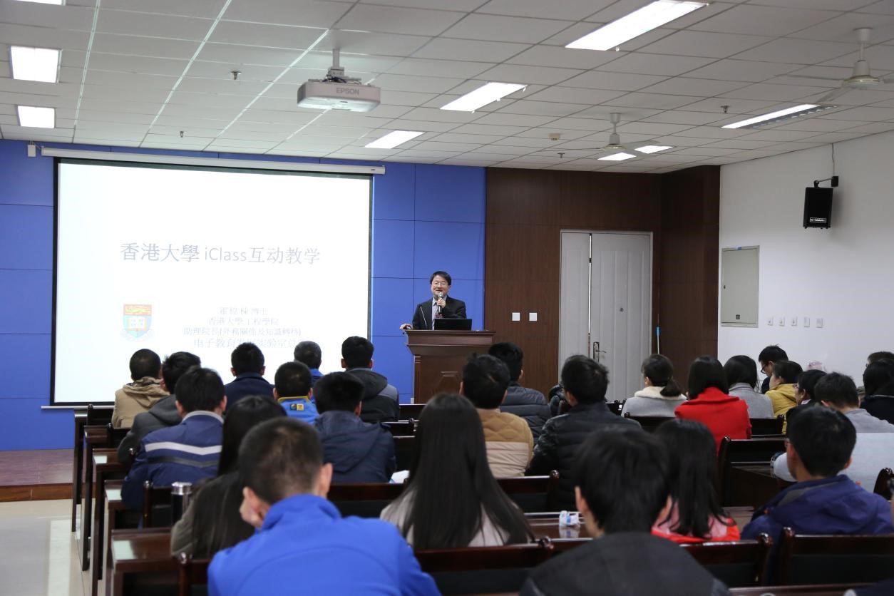 (MK体育 教师教学发展中心)2月28日下午,香港大公司董,工程公司助理经理霍伟栋博士受邀来到南校区G楼240报告厅做了一场题为“香港大学iclass互动教学”的讲座。霍伟栋博士为在场一百余名师生详尽地介绍了香港大学自主研发的该平台,并且现场展示了一堂生动的演示课。