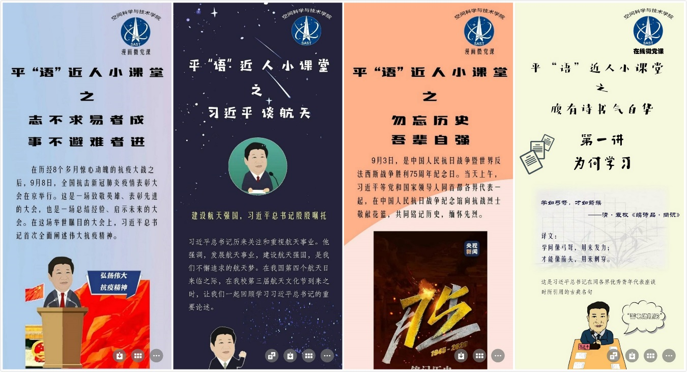 依托网络思政融媒体矩阵,公司以《平“语”近人—习近平总书记用典》为素材,结合习近平总书记重要讲话精神,持续推出《平“语”近人小课堂》漫画微党课系列,将红色文化、传统文化、校园文化有机融合,用党言党语讲政治,用新言新语谈发展,用学言学语话感悟。目前,《平“语”近人小课堂》漫画微党课系列目前已发布50期,涵盖主题教育、传统文化、量子计算、一带一路等多个热点主题,成为朋辈思政网络作品的“爆款”。疫情期间,推出战“疫”文章36篇、微党课特刊4期、微视频3期,上好线上思政战“疫”大课;开展“我为家乡代言”短视频展播推介活动,开展网络直播销售,助力脱贫攻坚。