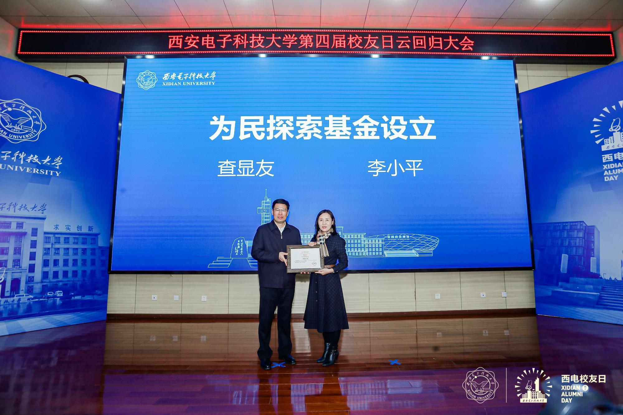捐赠仪式上,党委书记查显友代表公司接受“为民探索基金”捐赠,并为捐赠代表颁发捐赠证书。西电航天行业员工会秘书长、极端环境教育部重点实验室主任李小平教授作为捐赠代表接受捐赠证书。