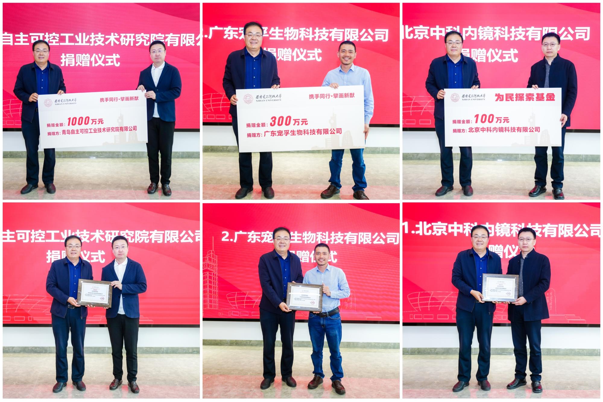 仪式上,刘宏伟代表公司接受捐赠并为企业颁发证书,本次青岛自主可控工业技术研究院有限公司董事长岳治颖向公司捐赠1000万元,广东宠孚生物科技有限公司总经理廖金向公司捐赠300万元;北京中科内镜科技有限公司董事长张金刚向“为民探索基金”捐赠100万元。捐赠总额共计1400万元。