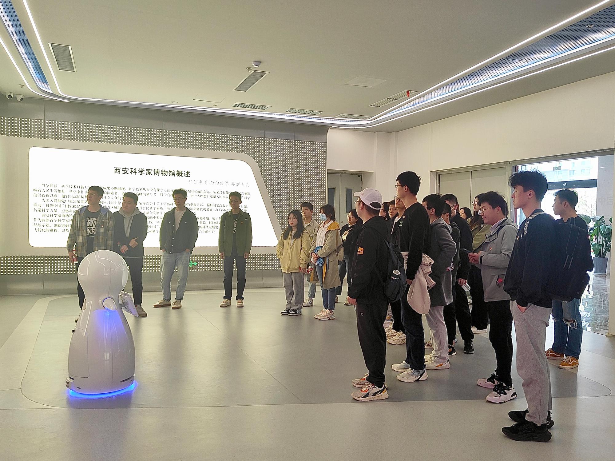 作为西北首家科学家博物馆,西安科学家博物馆以“科创中国”为主线,全方位展示“科创中国”品牌、在陕院士风采、新中国科技发展史、科技成果向生产力转化进程以及当前“卡脖子”技术等丰富内容。目前已有20余家科技制造企业和高校的科技成果、产品入驻博物馆,首批展出科技成果10余项,智能制造、电子信息等产品30余件。在机器人小博的带领下,同学们仔细观摩了重点产业展区长征系列火箭模型和西安地铁二号线模型。驻足院士墙前,党员同志通过陈列的大量珍贵手稿、照片等历史资料,了解了老一辈科学家无私奉献的敬业精神和一丝不苟的科研态度。