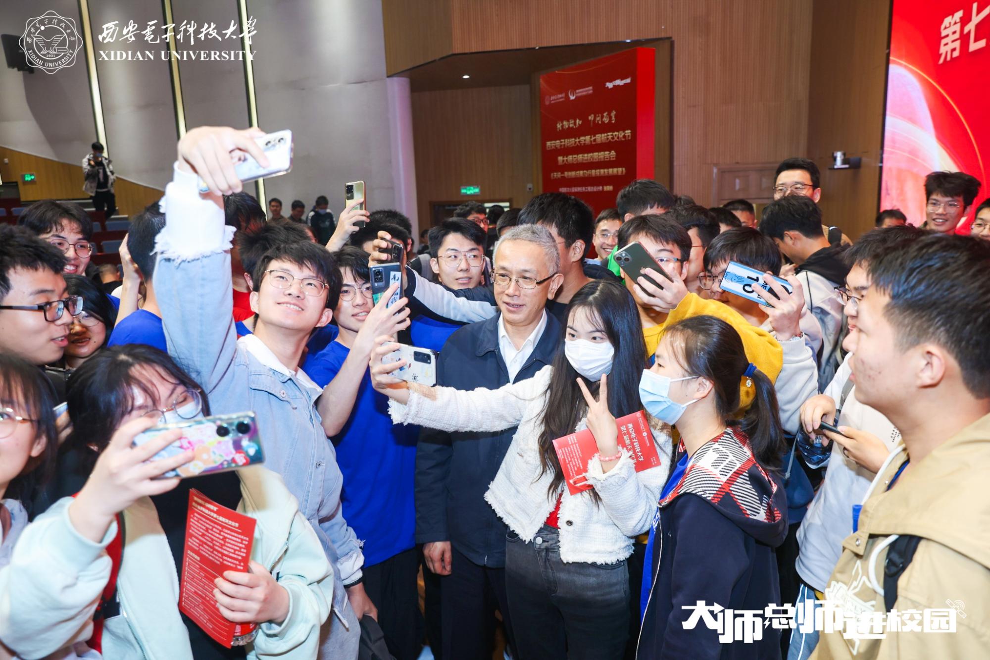 散场后,MK体育2020级本科生付佳佳的心情久久不能平复,她在朋友圈记录并分享了自己的感受“听完张总的报告,内心感到无比的激动,无论是身为西电人的满满自豪,还是对于航天总师的深深敬意,心中的航天梦也被再次点燃,张总师被我们簇拥着退场之前,转过头笑着说‘希望有一天,我们能作为同事再见面’,这句话将会永远激励着我!”
