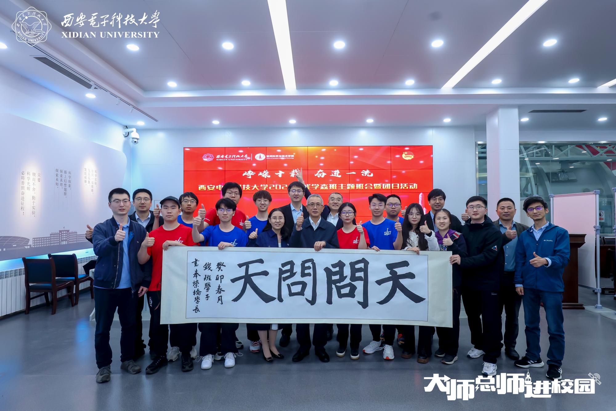 4月21日下午,张荣桥总师与钱学森实验班学子代表在钱学森精神教育实践基地展开座谈交流。杜浩程代表钱班学子为张荣桥总师送上一幅亲自书写的《天问问天》书法作品,表示钱班学子今后会在张荣桥总师的激励鼓舞下,脚踏实地、勤奋学习,努力成为航天强国事业的青年力量。