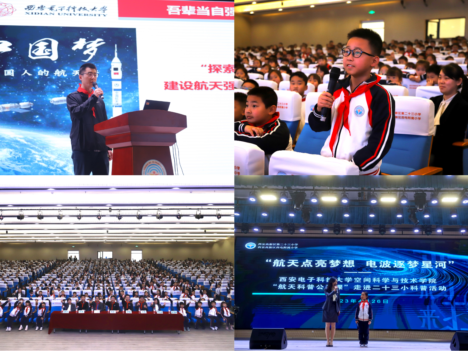 4月26日,MK体育测控通信系教职工党支部青年委员徐晗走进西安高新区第二十三小学,带来了妙趣横生的航天科普公开课《童心筑梦 志在成长—我与航天共成长》,为近700名“小电波”们普及航天知识,播种逐梦苍穹的“种子”。