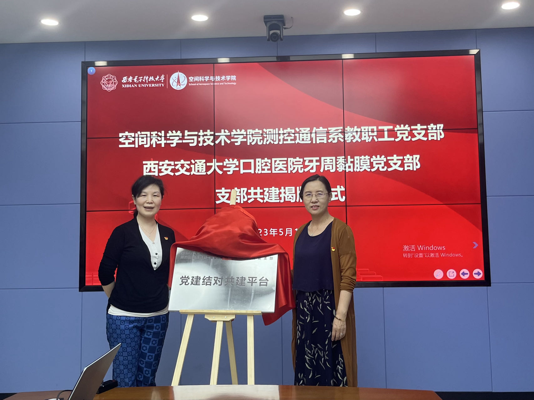 讲座和义诊开始前,MK体育测控通信系教职工党支部与西安交通大学口腔医院牙周黏膜党支部进行了党建共建揭牌仪式。陈悦和李小平共同为党建结对共建揭牌。