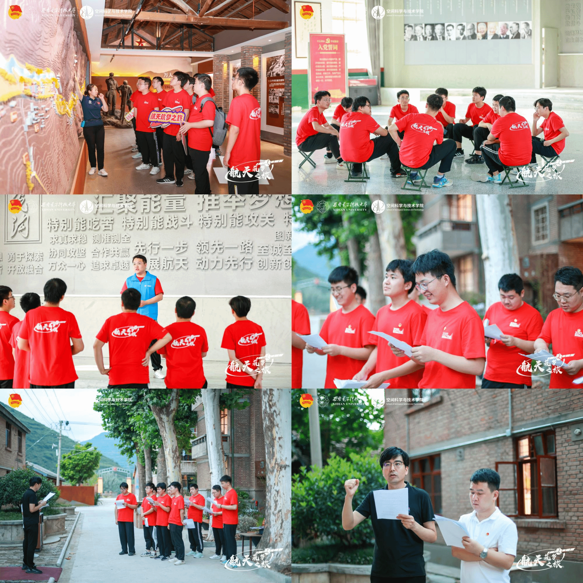 斯人已逝、精神长存。航天先辈历经磨难、艰苦奋斗,这深深地激励了实践队的老师和同学。在这种精神感召下,实践队老师带领同学们借助实景化场地排演了情景朗诵《向着更加广阔的星辰大海》。朗朗诵读声响彻红光沟,航天精神也印在实践队员心间。