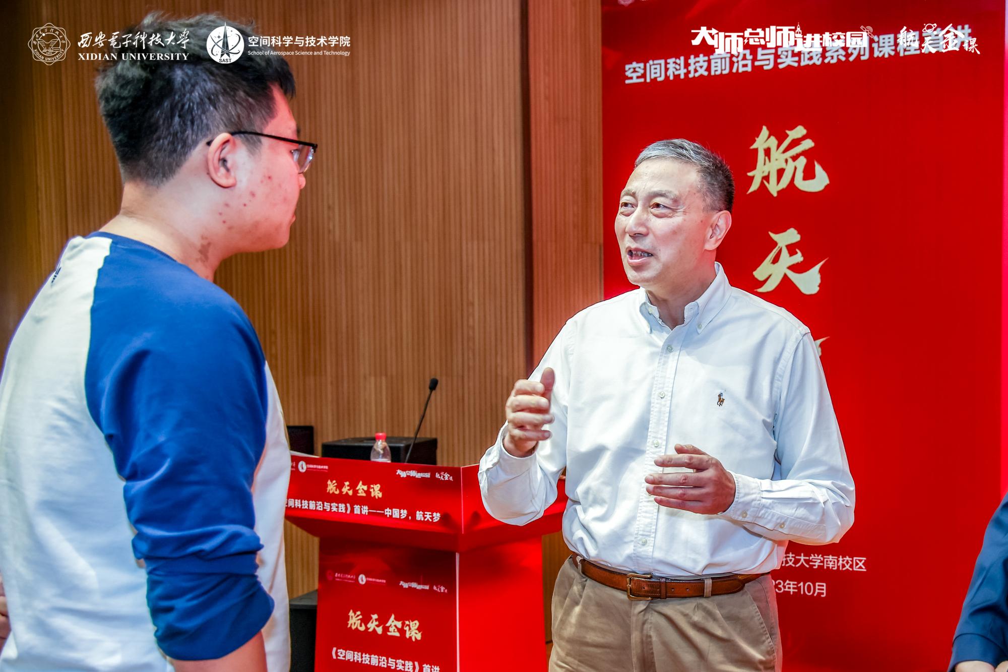 MK体育2021级钱学森班的金荣杏同学在课程结束后久久不愿离去,在与江帆总师的交谈中表示:“自己曾在高中母校北京市八一中学听过江帆总师的报告,当时听完后热血沸腾,然而对于如何将这种热情转化为实际行动却有些茫然,今天在西电再次听到江帆总师的授课感到非常激动,曾经在课堂上学到的科学原理变得更加具象化,现在对于自己的人生选择也有了更加明晰的规划,选择进入钱学森班学习的初衷就是为了投身航天强国建设,希望将来我能把我的所学奉献给我的祖国,将我的青春融入祖国的航天事业!”