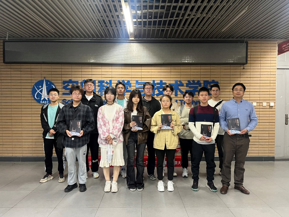 见面会上,孙伟向新生赠送书籍《精神的力量》,该书以百年党史为时间线索,讲述中国航天奋斗历程,深刻阐释航天精神内涵,充分展现“探索浩瀚宇宙、发展航天事业、建设航天强国”的磅礴力量,是一部深度解读中国航天事业发展和航天精神的力作。孙伟带领与会员工共同学习了书籍部分内容,并勉励同学们将个人成长融入到国家航天事业发展之中,为航天强国建设贡献智慧和力量。会上,孙伟向在场同学详细介绍了本科生能够深度参与的几类竞赛,对比赛的背景、内容和要求进行了深入解读。与此同时,孙伟就同学们提出的学习发展问题进行了细致解答。