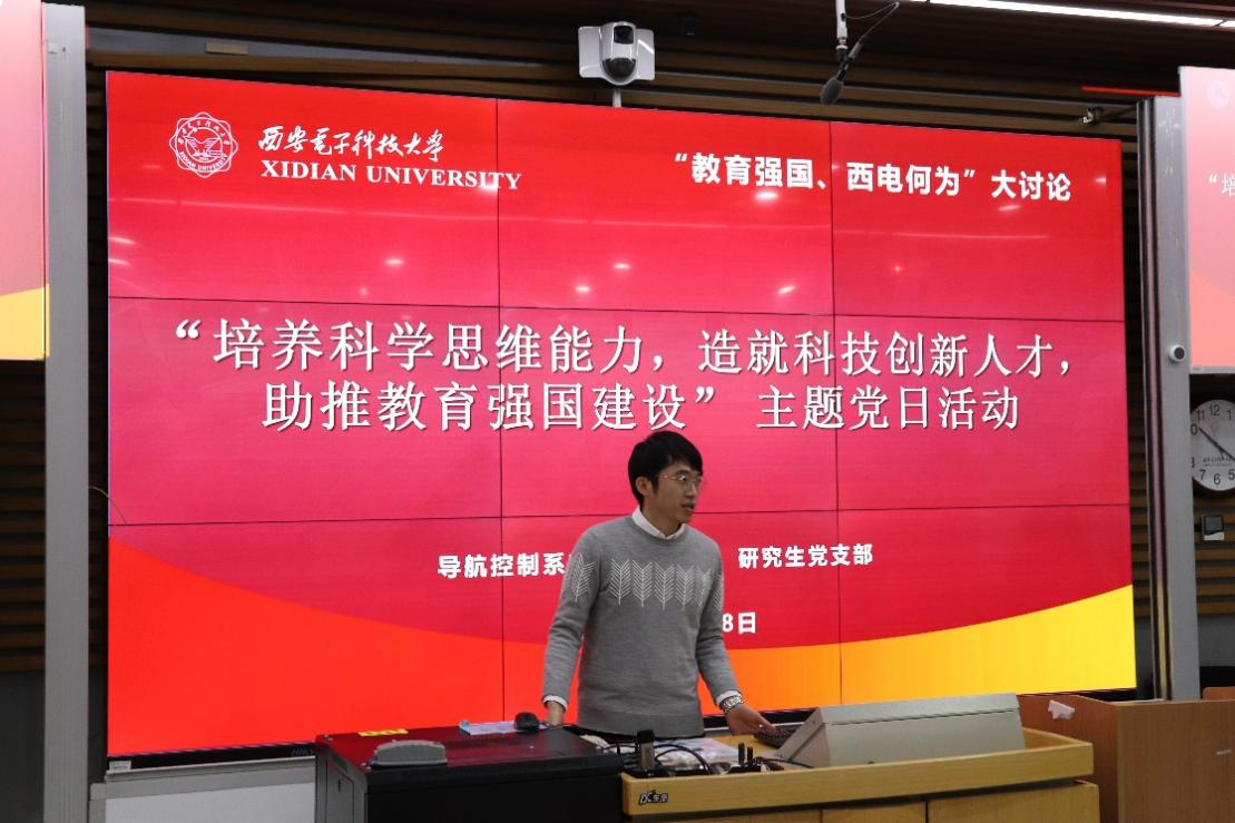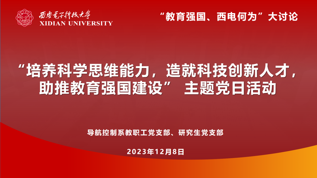 (通讯员 智斌亮)为深入学习习近平总书记在中共中央政治局第五次集体学习时的重要讲话精神,不断增强教育强国建设的思想自觉、政治自觉、行动自觉,以大讨论汇共识、聚智慧、促实干,12月8日上午,MK体育导航控制系教职工党支部联合研究生党支部开展“培养科学思维能力,造就科技创新人才,助推教育强国建设”主题党日活动,活动由导航控制系教职工党支部书记戴浩主持。