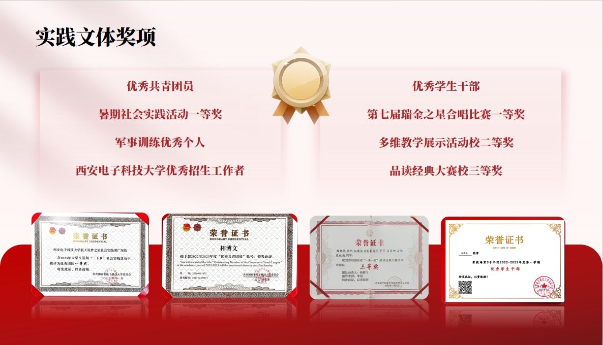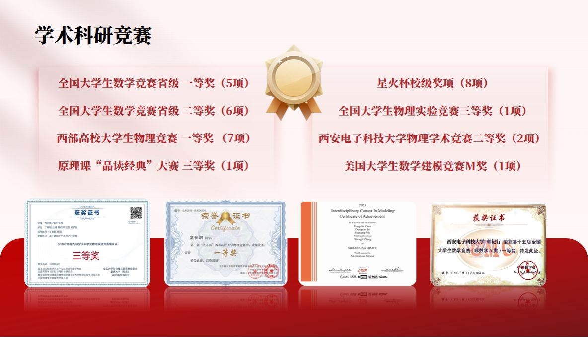 学业成绩优异,全面发展。2216029班全员配备学业导师,量身定制导学方案,涵盖学涯规划、科技创新、学科竞赛等多维度活动载体。班级竞赛参与率100%,四级通过率100%,大二学年M2均分高达99.5分,7人次获得国家奖学金和国家励志奖学金。获得国家级以上奖项22项,省部级奖项68项,校级奖项78项,筹备发表高水平论文2篇。班级成员多次获得优秀员工、优秀员工干部等荣誉称号。班级坚持五育并举,同学们积极参加西军电杯、金话筒杯等实践文体活动并屡获佳绩。