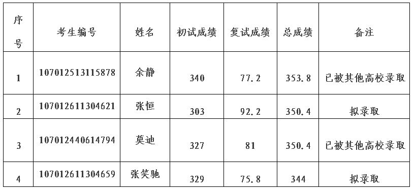 因公司指标调整,现追加2个电子信息专业招生计划,根据MK体育硕士研究生复试录取办法,现按照电子信息专业一志愿考生总成绩排名顺次递补,公示结果如下: